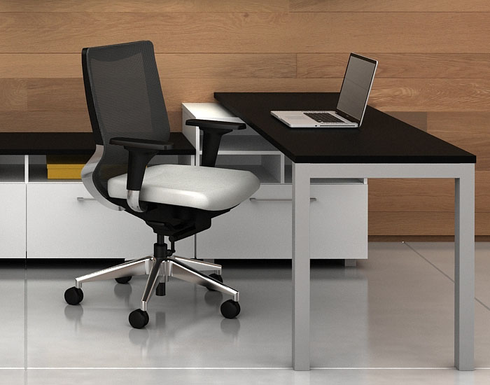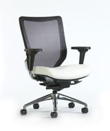 A lean, smart profile generously proportioned for comfort. Code adjusts easily to provide supportive seating for people large and small. The polished aluminum frame defines a body responsive mesh back.
