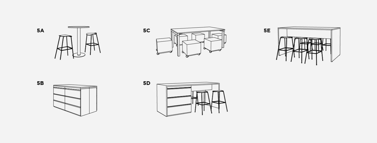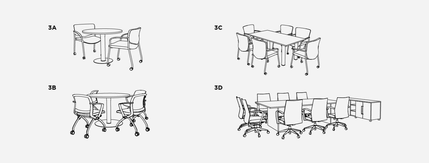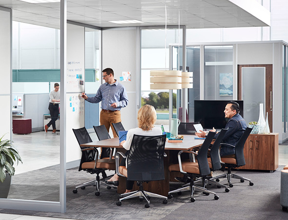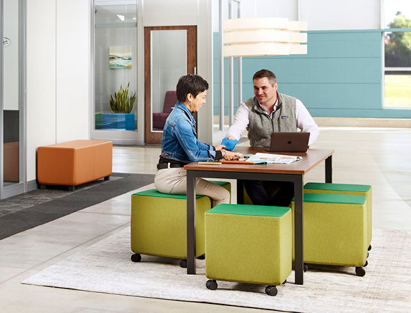 Accommodate a range of work styles with flexible work solutions designed for conference rooms and lounges. Includes touchdown settings for mobile workers, standing-height tables for team huddles, and private booths for quiet getaways.