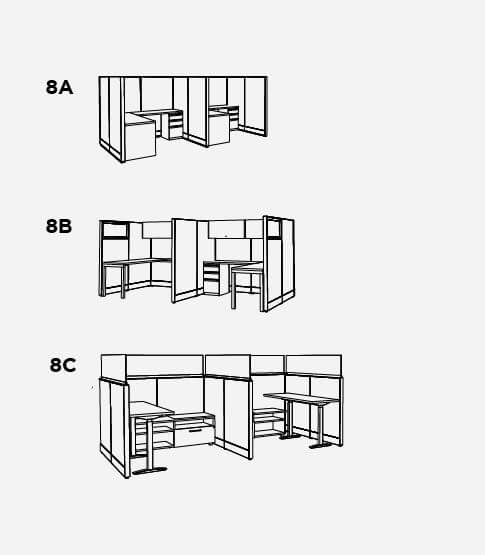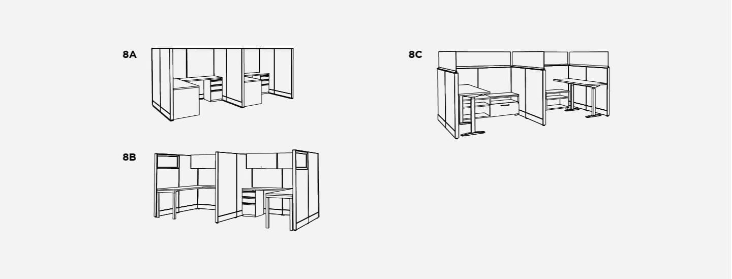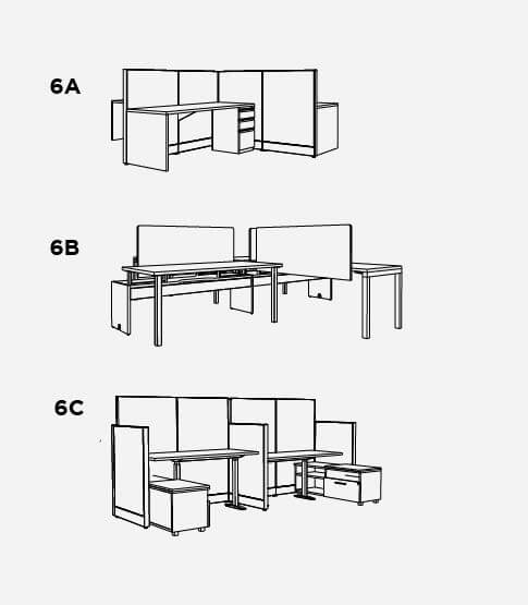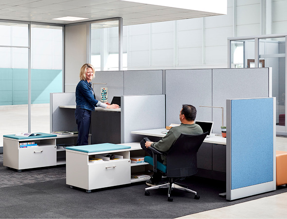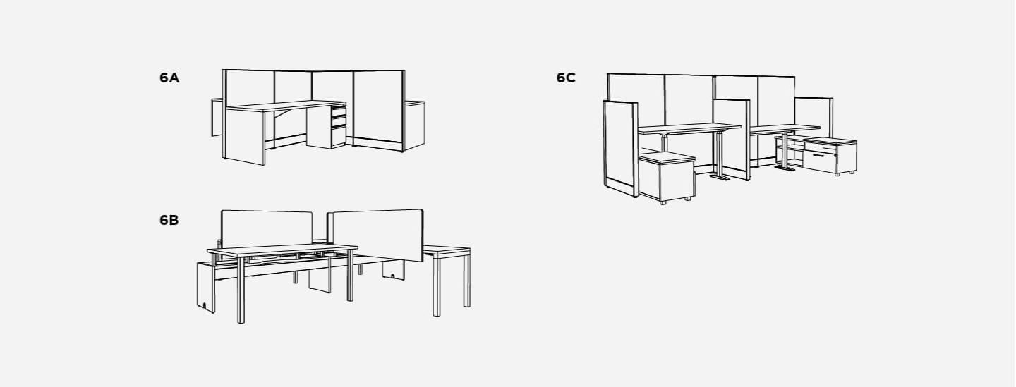 All the benefits of an open office with just enough visual privacy for focused work. These workstations can be easily grouped into a compact area for large teams. Pick your favorite package, then repeat it to give everyone their own workspace.